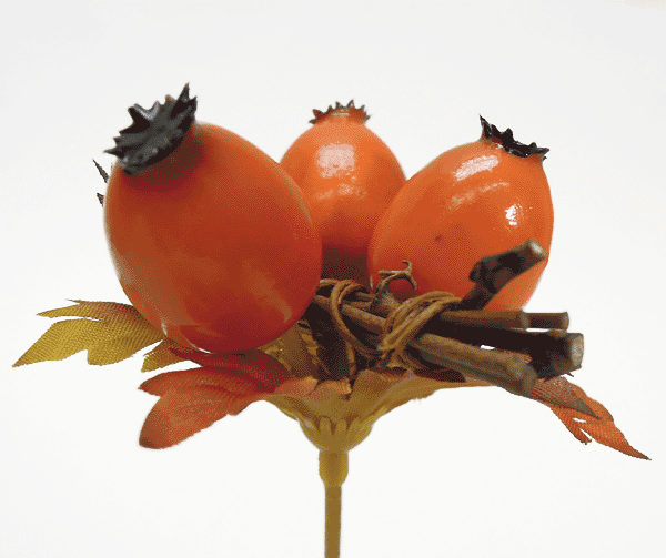 全長14cm【フルーツピック】VE-6857*艶実付(ローズヒップ風)(実径/約2cm*全長約14cm*幅/径約7cm)アレンジやリース等のハンドメイドに*