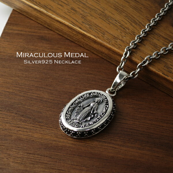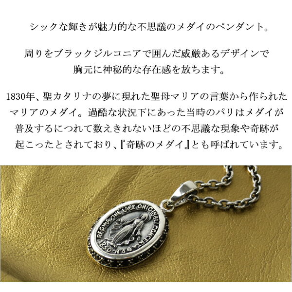 不思議のメダイ シルバー ネックレス (チェーン付き) シルバー925 ブラックジルコニア メンズ ペンダント キリスト 聖母マリア メダイ メダル ブラック 黒 ゴシック ロック ハード メンズ 男性 プレゼント 人気