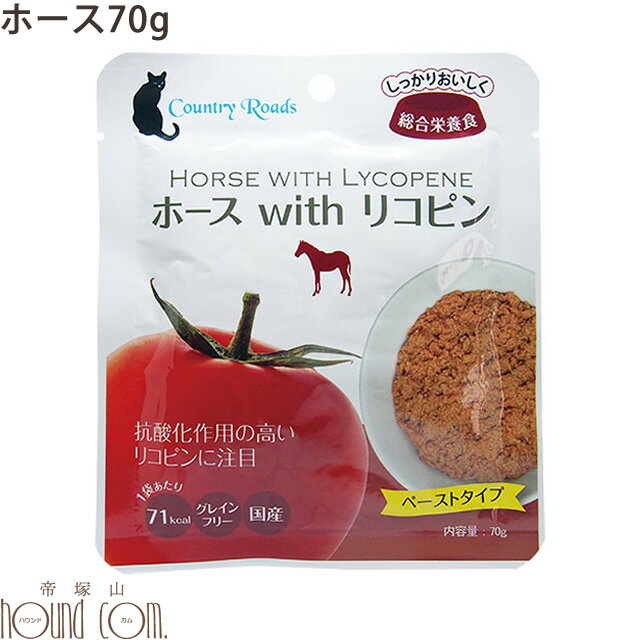 カントリーロード レトルト| withリコピン ホース(馬) 1袋 70g キャットフード 猫 レトルト リコピン 穀物不使用 ウェットフード 猫用 馬肉