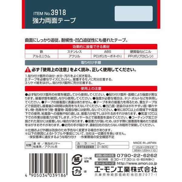 【メーカー在庫あり】 エーモン 強力両面テープ 軽量外装パーツ用 3918